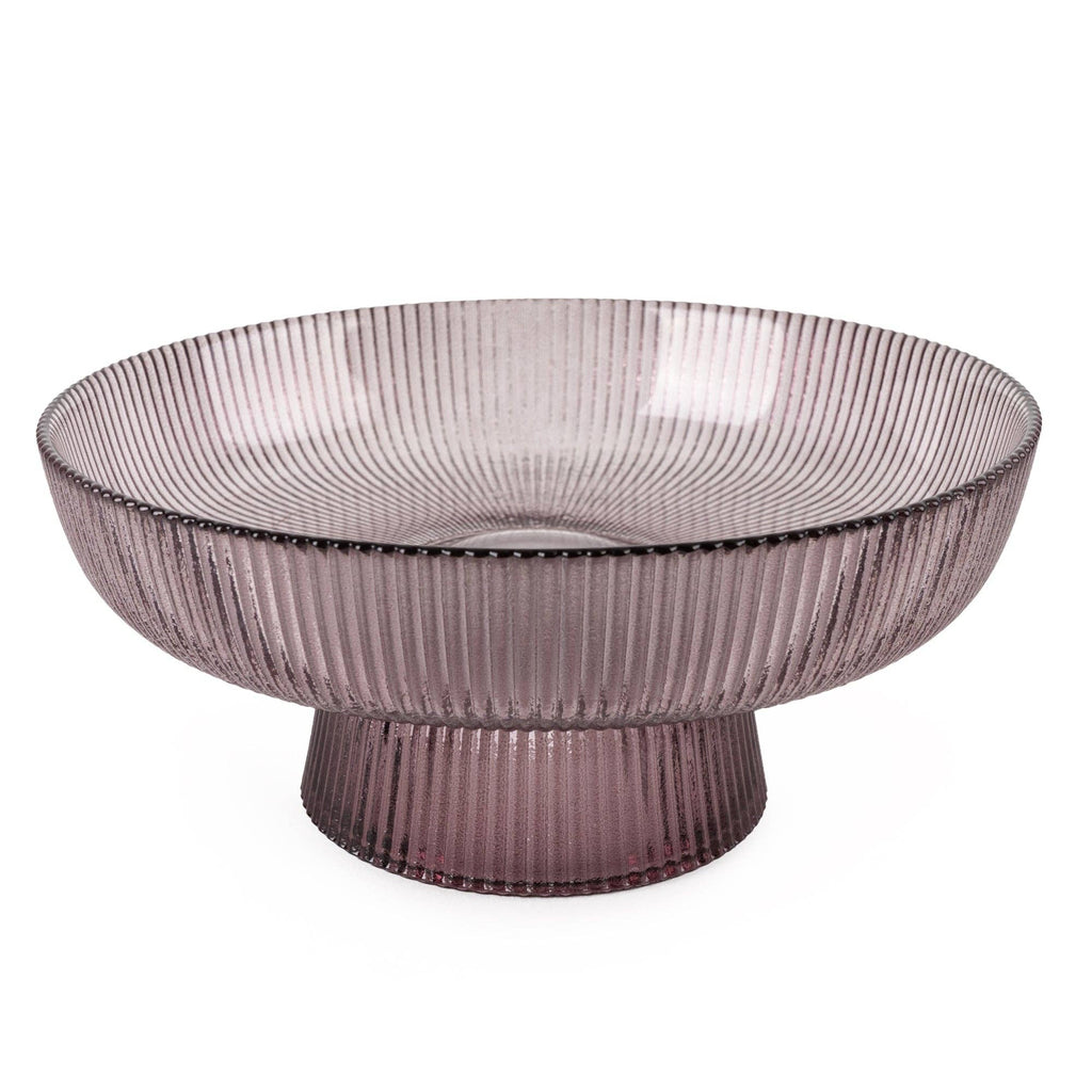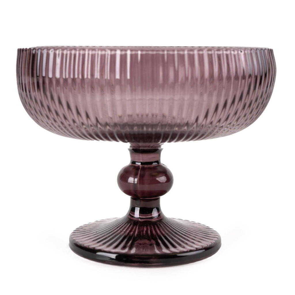 20cm Ridged Glass Pedestal Bowl - Plum 1PK