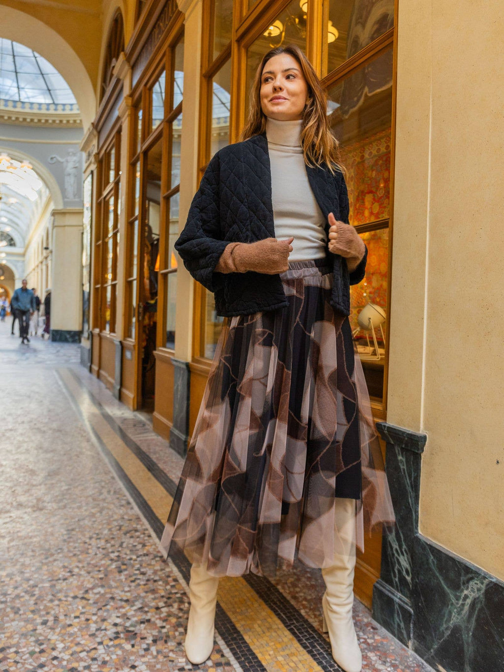 2442-2 velvet quilted jacket: Black